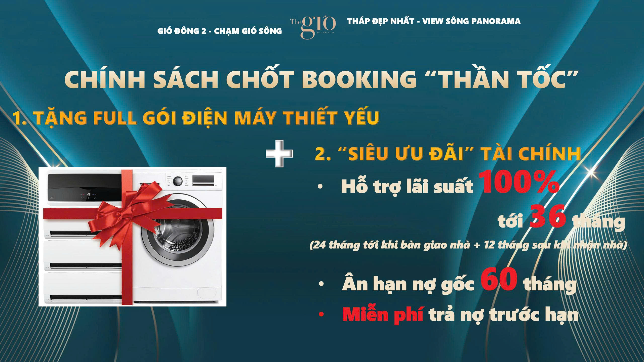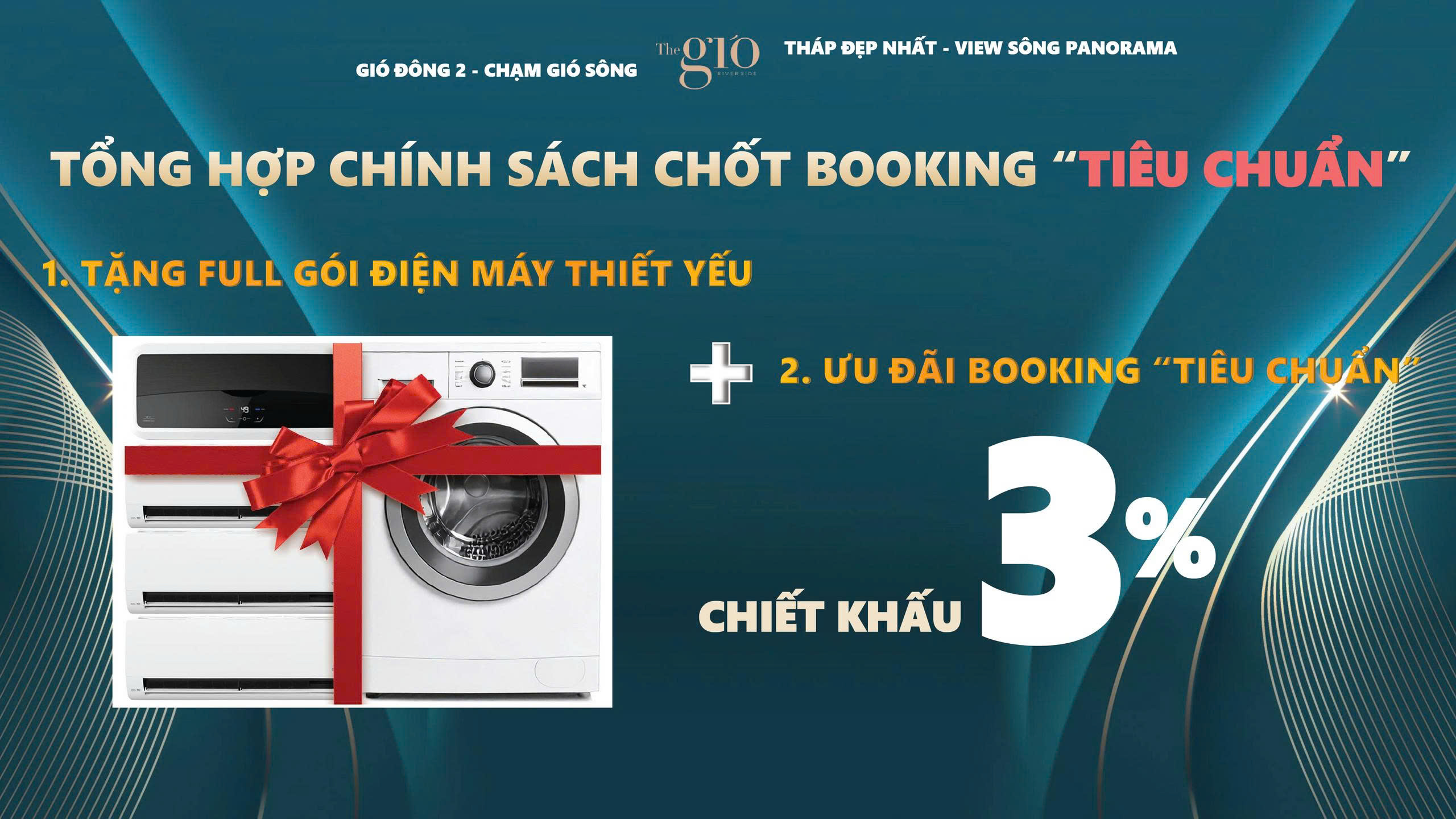 - Ưu đãi booking tiêu chuẩn: tặng full gói điện máy thiết yếu, cộng thêm chiết khấu 3%.