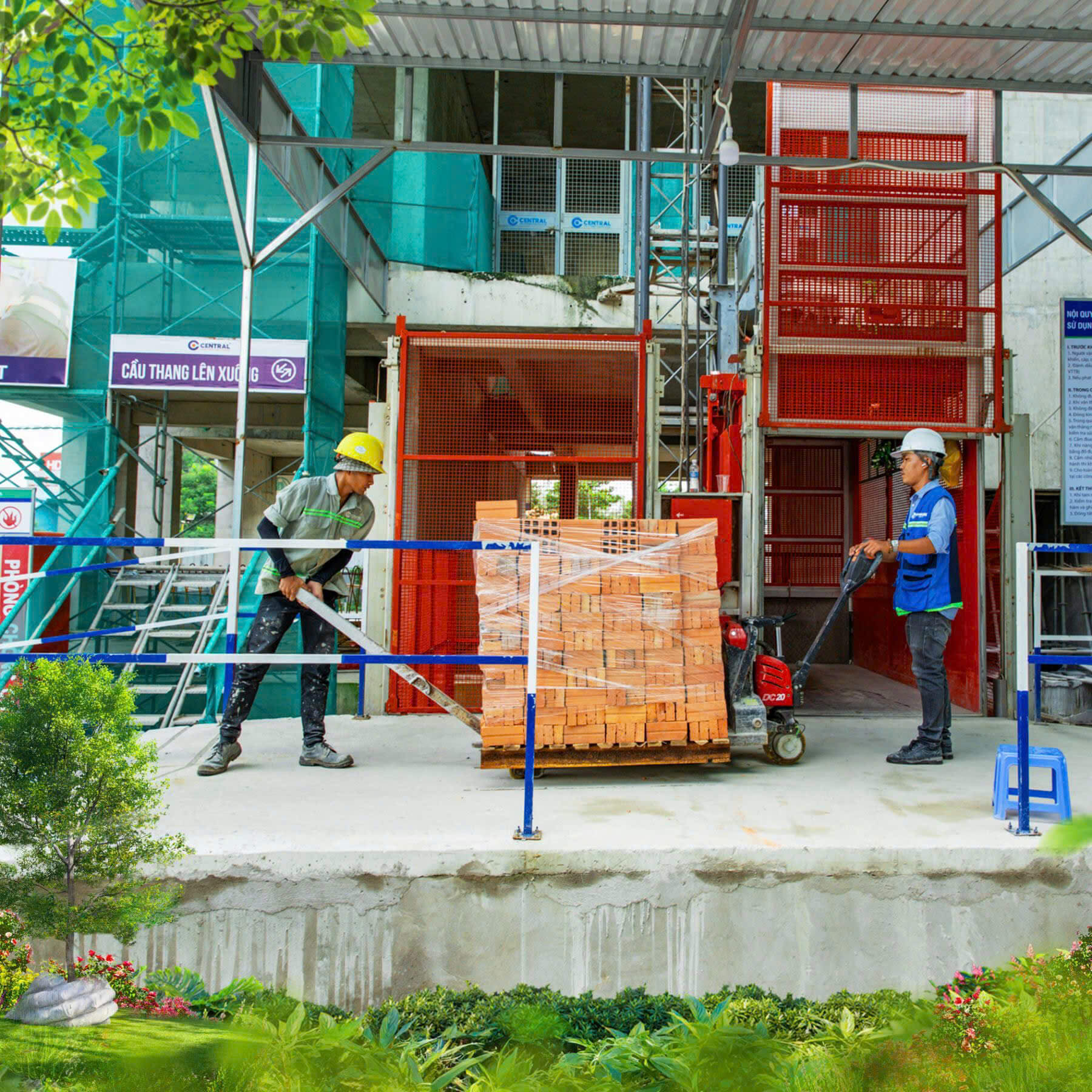 • Công tác xây tường: Được triển khai đồng loạt ở nhiều tầng, tạo nên không khí thi công sôi động, nhộn nhịp suốt ngày đêm.