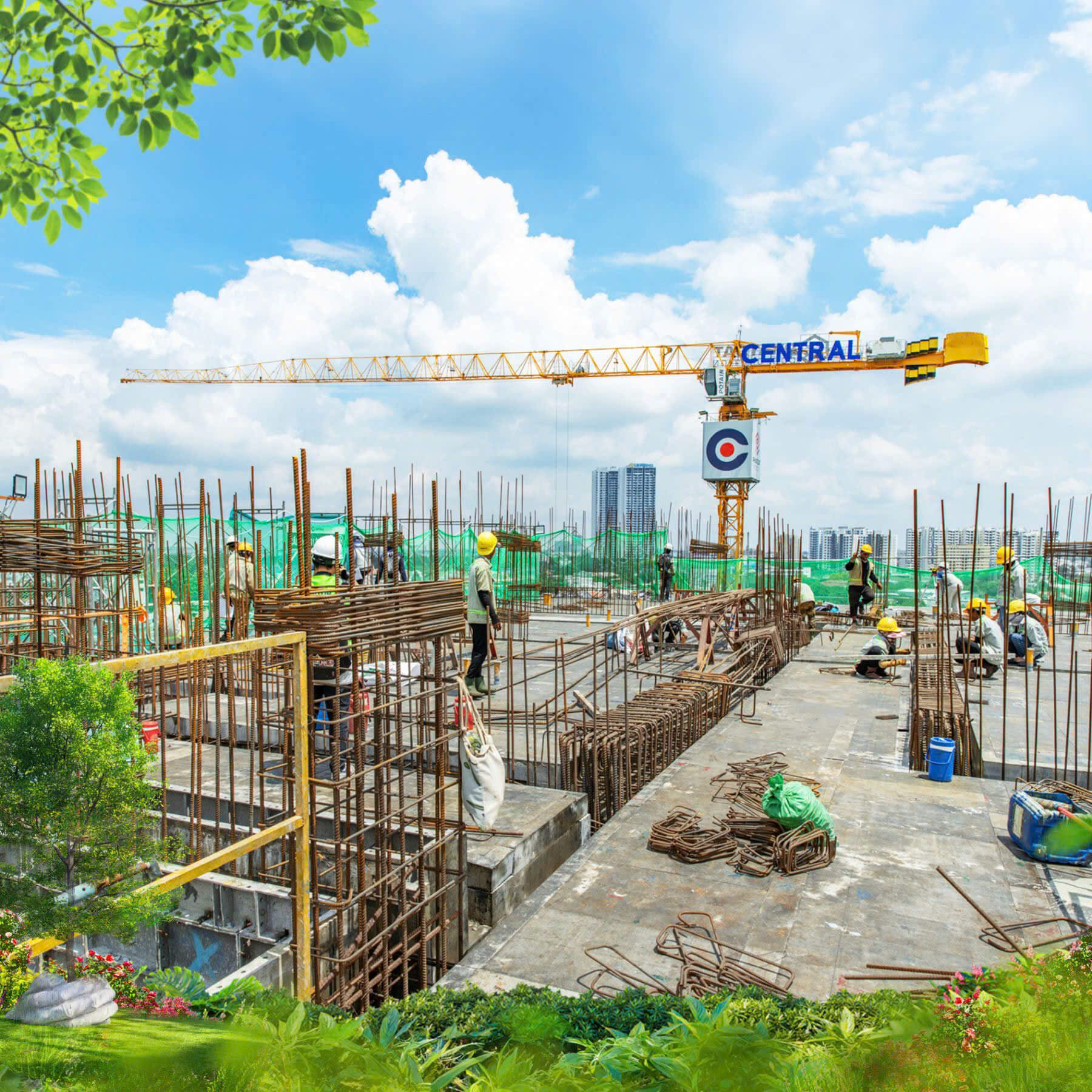 • Tháp Zenia 1: Vách và sàn tầng 11 đang được hoàn thiện khẩn trương. Những đường nét kiến trúc đầu tiên đã bắt đầu lộ diện, hé mở diện mạo sang trọng và hiện đại của tòa tháp.