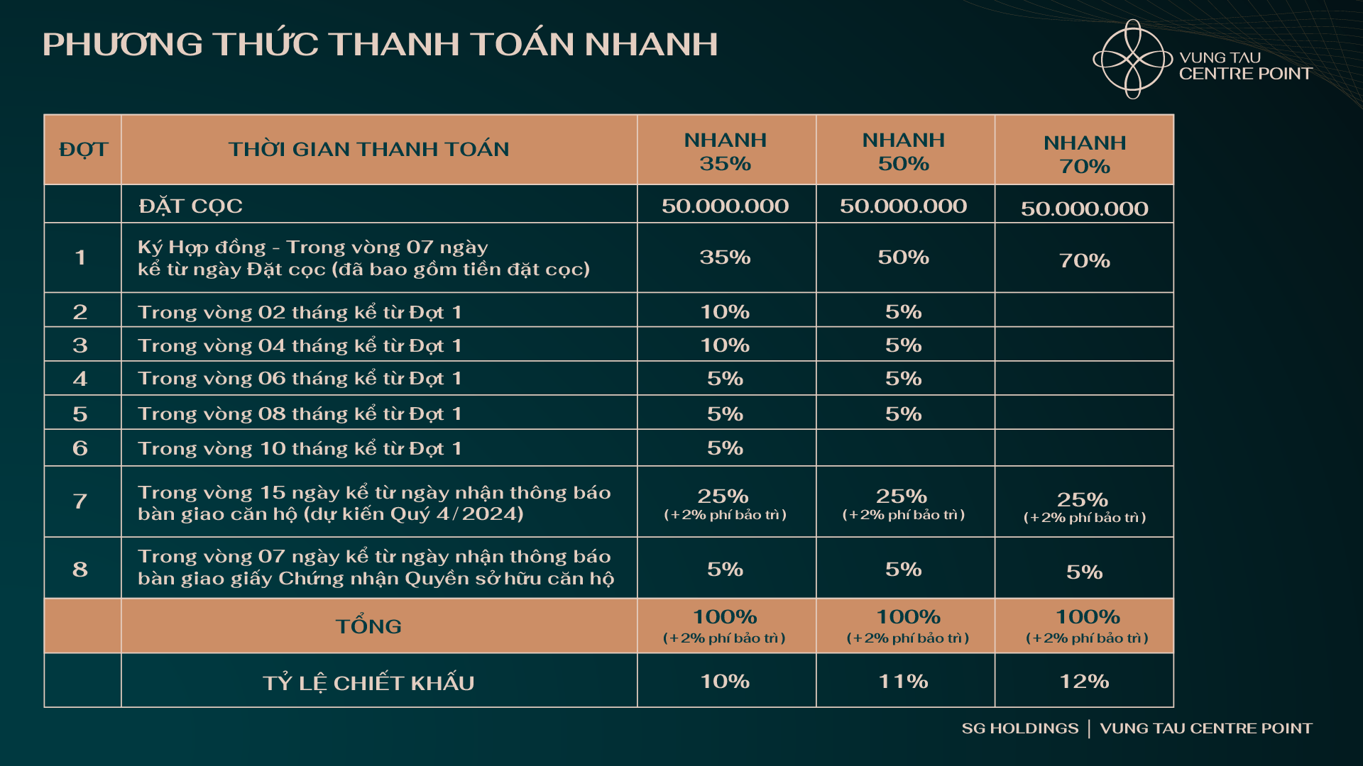 CHÍNH SÁCH BÁN HÀNG DỰ ÁN VŨNG TÀU CENTRE POINT