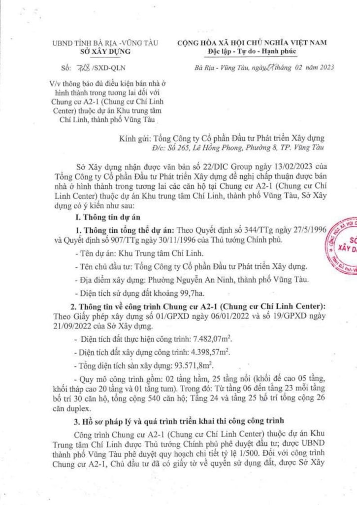 Vung Tau Centre Point là một trong những dự án có pháp lý đầy đủ nhất hiện nay tại Vũng Tàu với Giấy phép đủ điều kiện bán hàng số 728/SXD-QLN ngày 27/02/2023 và Bảo lãnh nghĩa vụ tài chính số 192/2022/OCB.
