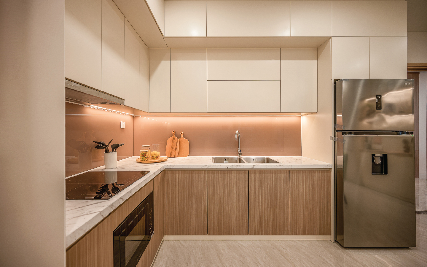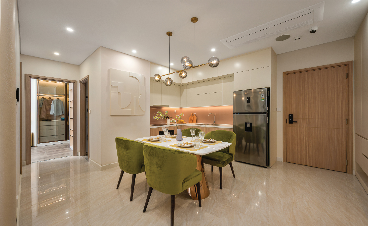 Căn hộ được thiết kế vuông tối đa mặt sáng, đón ánh sáng mặt trời ngập tràn không gian sống. Không gian bếp rộng rãi với đảo bếp sang trọng, hệ tủ tiện nghi cho bữa cơm gia đình ấm cúng, ban công trải dài, mở rộng từ phòng khách đến phòng ngủ. Căn hộ 2 phòng ngủ đều được chủ đầu tư trang bị 2 phòng tắm riêng, tối ưu sự riêng tư và thoải mái, phần sân phơi rộng rãi, tiện nghi, biệt lập với không gian sống