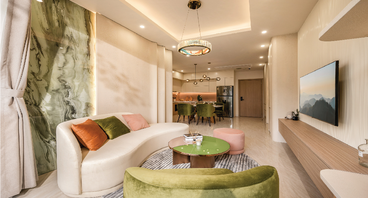 Căn hộ 2 phòng ngủ góc là loại căn hộ đặc biệt, cực kỳ hiếm có trên thị trường với 3 ban công, 2 trong số đó có view góc thoáng đẹp và sáng bừng. Diện tích rộng rãi, thiết kế mở, có nhiều cách thức bố trí layout tùy theo phong cách và nhu cầu sinh hoạt, hướng nào và phòng nào cũng thông thoáng, đón không khí và ánh sáng tự nhiên tạo tươi vui cho cả căn nhà. Không gian bếp rộng rãi và tiện nghi cho gia đình đa thế hệ. Phòng khách mở rộng ra ban công, giúp con người và thiên nhiên giao hòa làm một