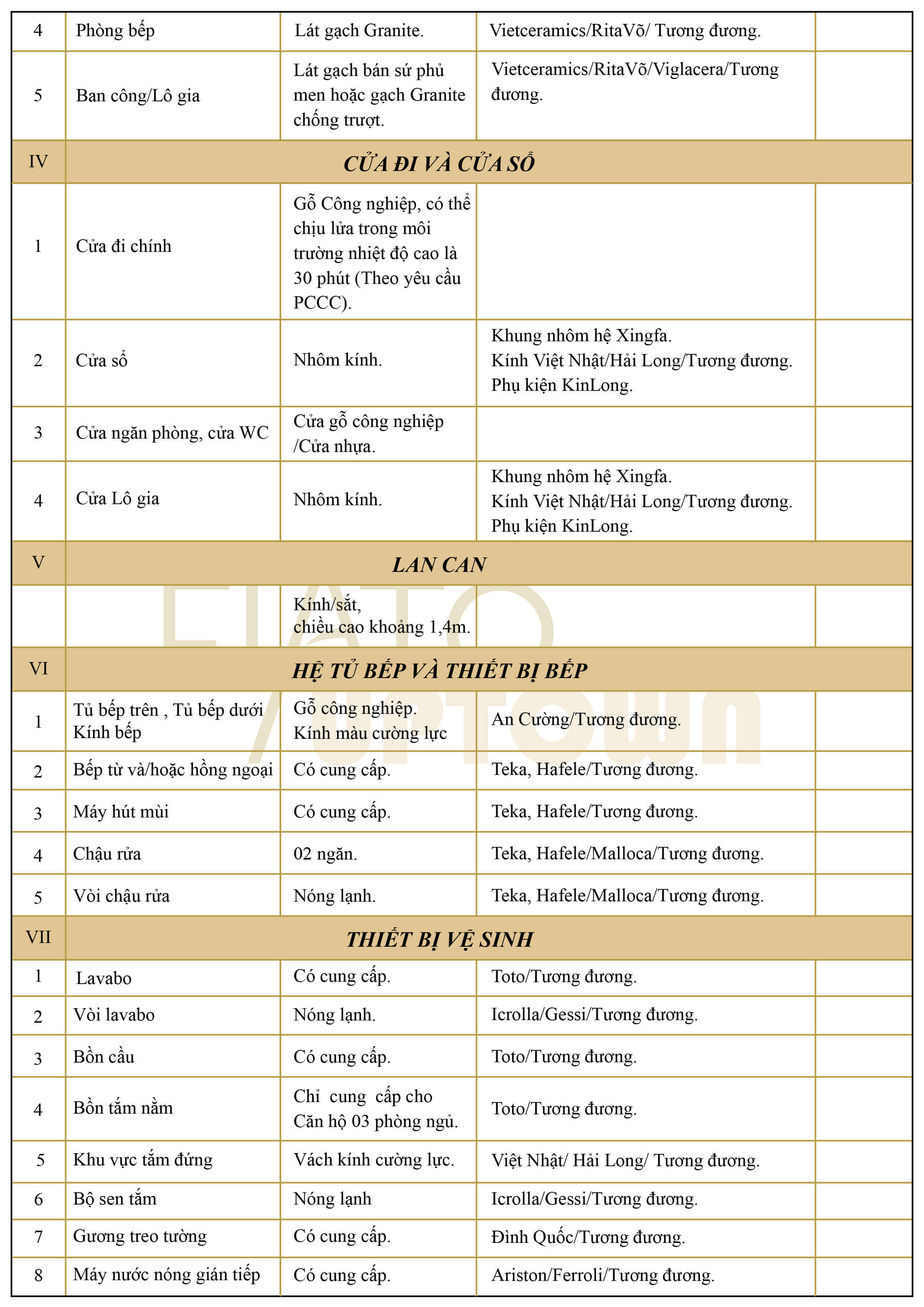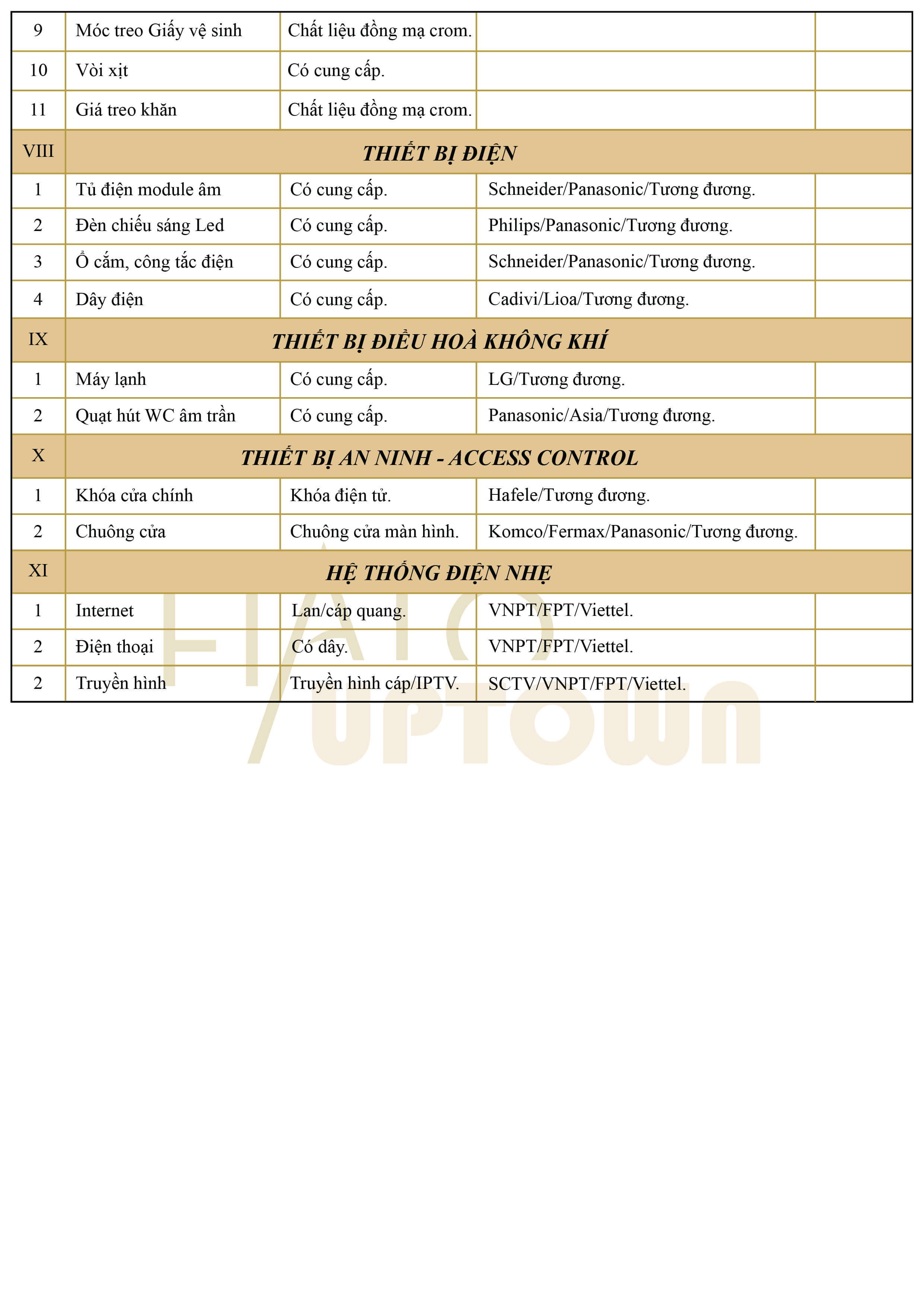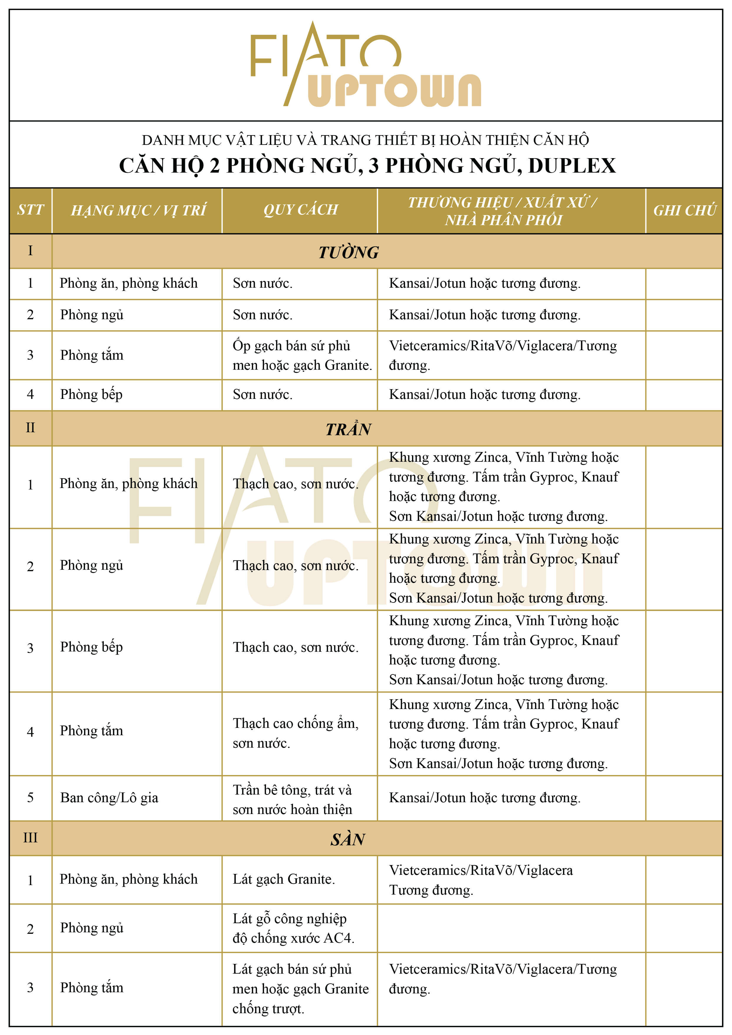 DANH MỤC BÀN GIAO CĂN HỘ FIATO UPTOWN THỦ ĐỨC