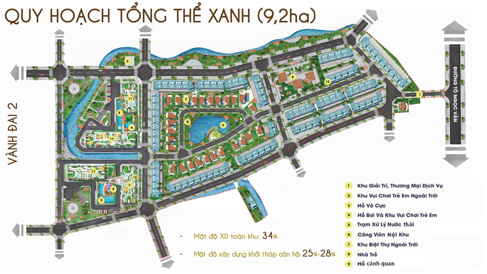 Mật độ xây dựng lý tưởng chỉ từ 25-28%, thêm không gian thoáng đãng cho mảng xanh và tiện ích.