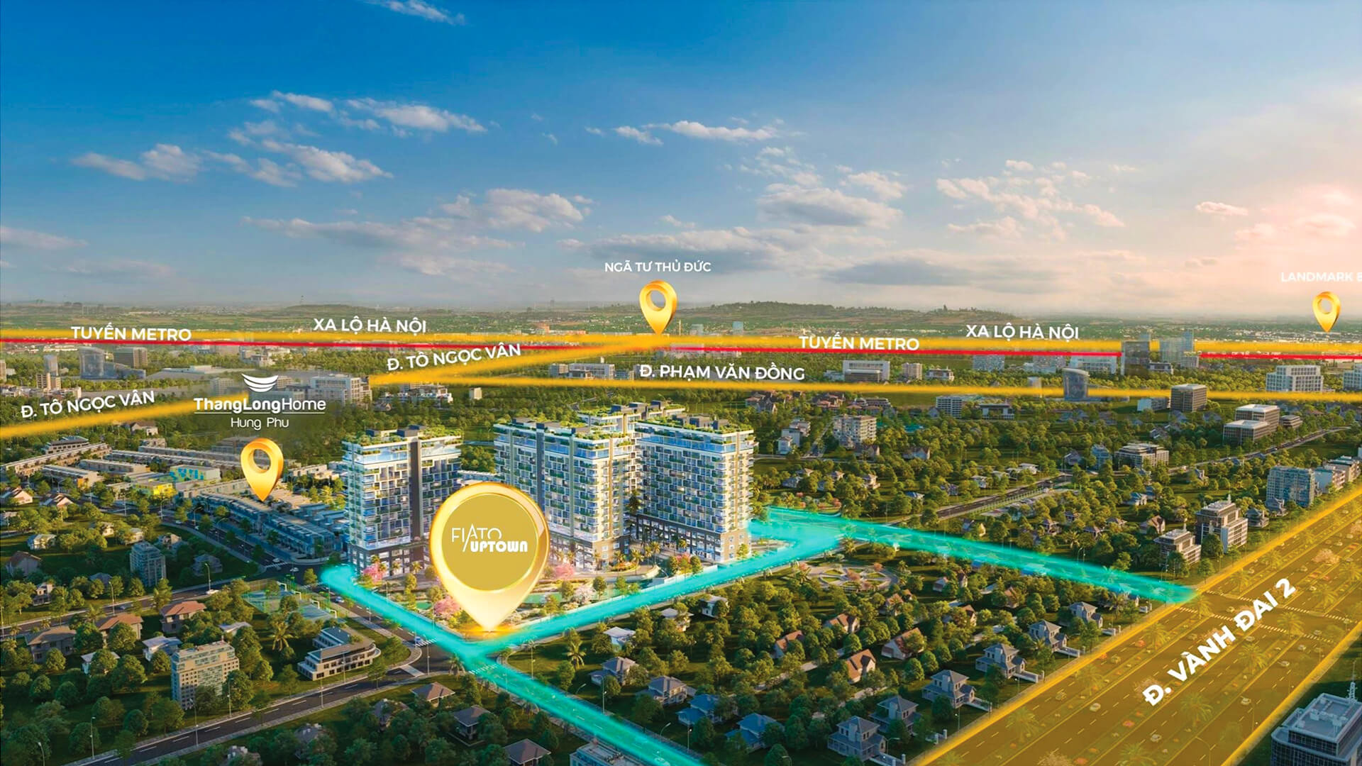 Vị trí đắc địa, Fiato Uptowntọa lạc ngay Vành đai 2 và đường Tô Ngọc Vân, Phường Tam Phú, Thành Phố Thủ Đức dễ dàng tiếp cận các địa điểm như Bệnh viện Thủ Đức, Chợ Tam Hà, Vincom Thủ Đức, Chợ Đầu Mối, Ga Sóng Thần, Metro Bến Thành – Suối Tiên, Gigamall, các Khu Công Nghiệp lớn …