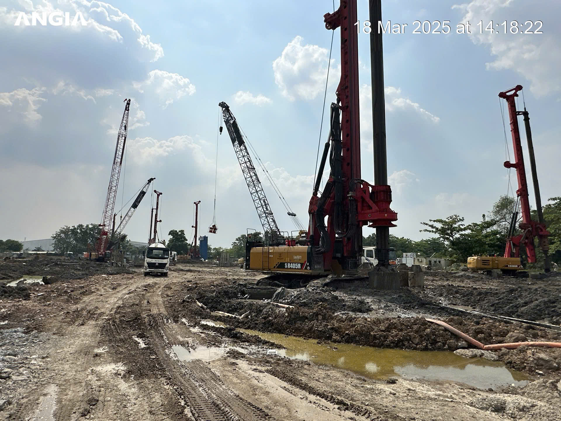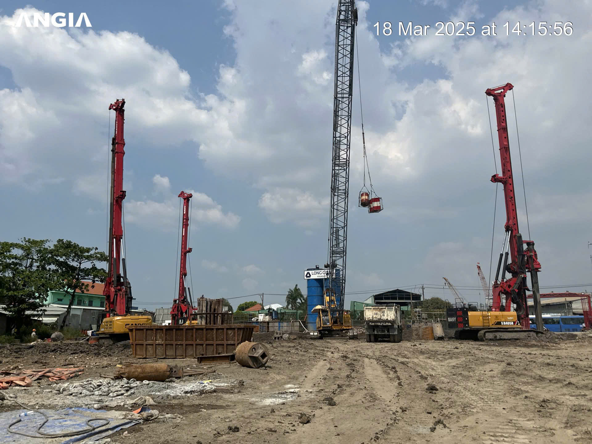 Bên cạnh chuỗi sự kiện ra mắt The Gió Riverside, ở một “diễn biến” khác, công trường dự án vẫn đang tất bật thi công các hạng mục cọc khoan nhồi và tường vây.