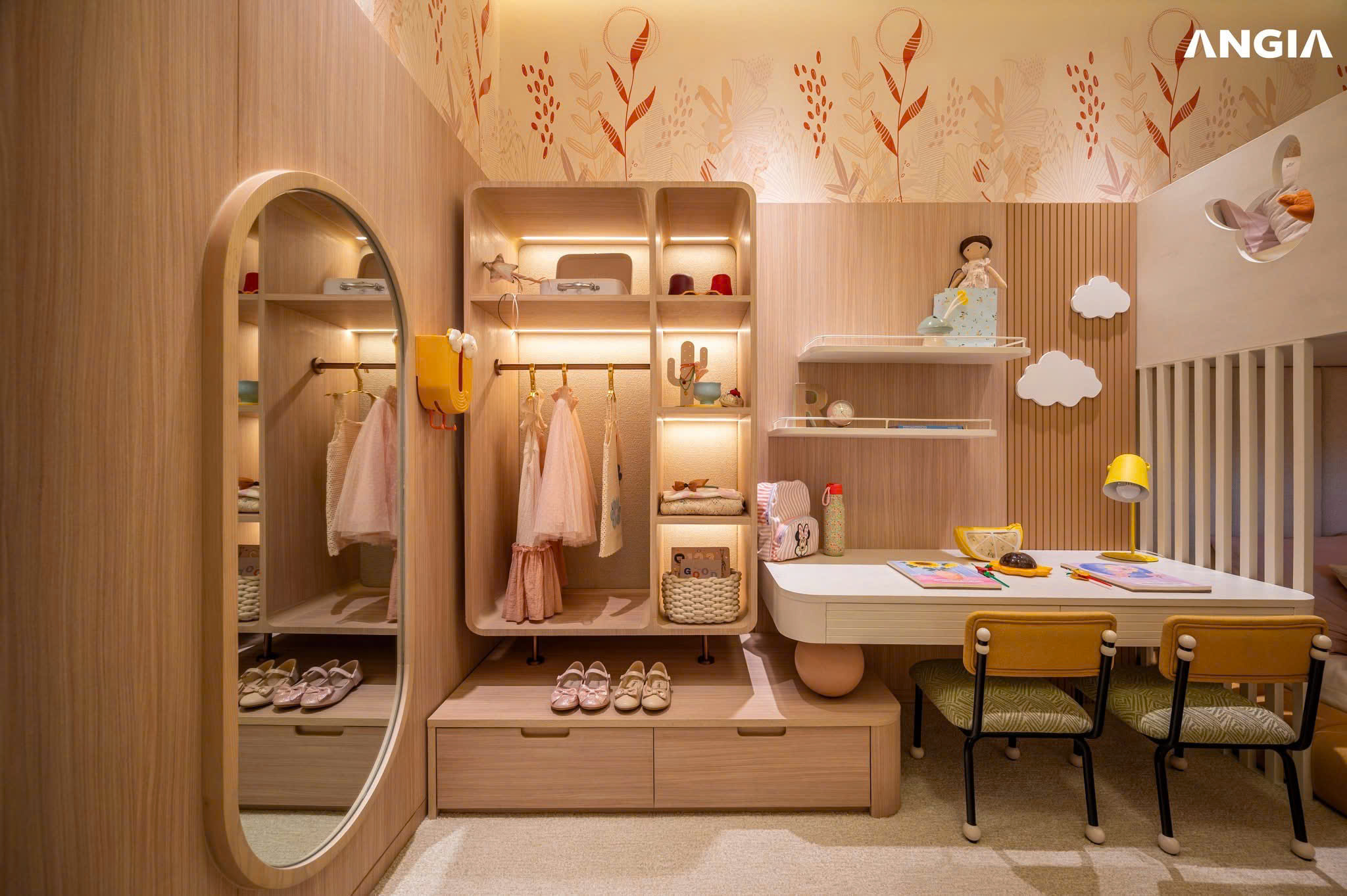 Trong khi đó, phòng ngủ phụ – thường dành cho trẻ nhỏ – lại đầy màu sắc và thiên nhiên, như một khu rừng thu nhỏ nuôi dưỡng trí tưởng tượng.