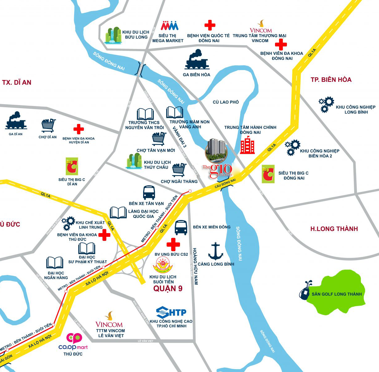 Sông Đồng Nai: Dự án nằm gần sông Đồng Nai, mang đến không khí trong lành, tạo nên môi trường sống lý tưởng.