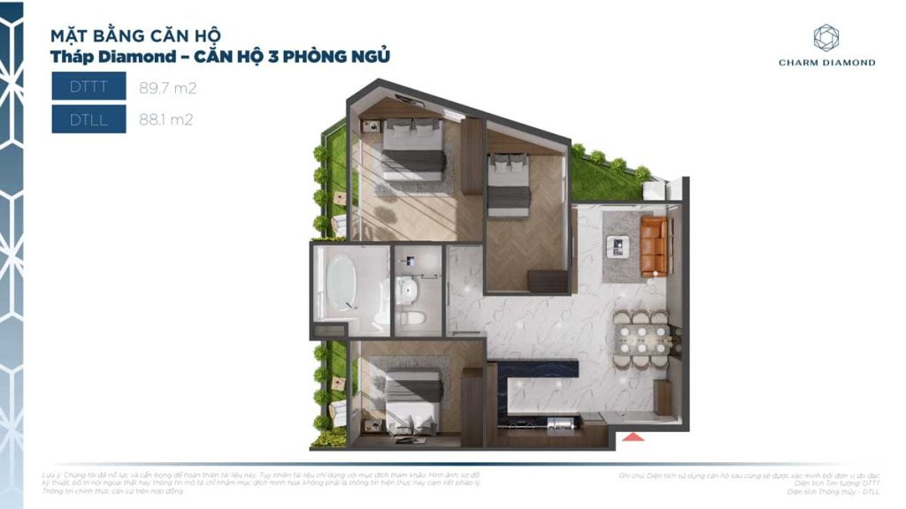 Diện tích căn hộ 3 Phòng ngủ dự án Charm City: