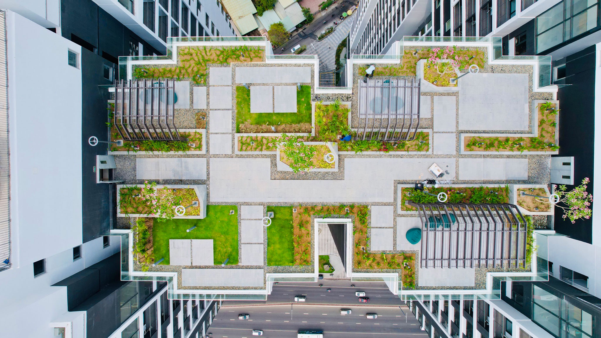 Tiện ích nội khuCông viên cây xanh – Hồ bơi tràn bờ – SkyBar tầng thượng – Khu nhà hàng – Spa & Gym – Đường dạo bộ – Khu vui chơi trẻ em,..