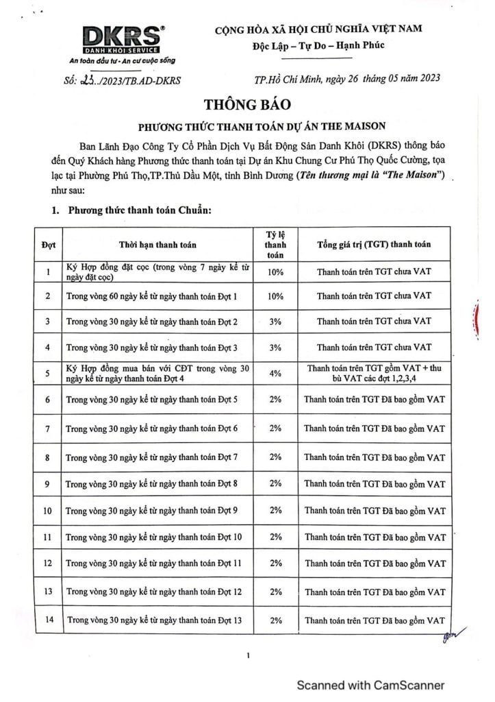 PHƯƠNG THỨC THANH TOÁN THE MAISON BÌNH DƯƠNG