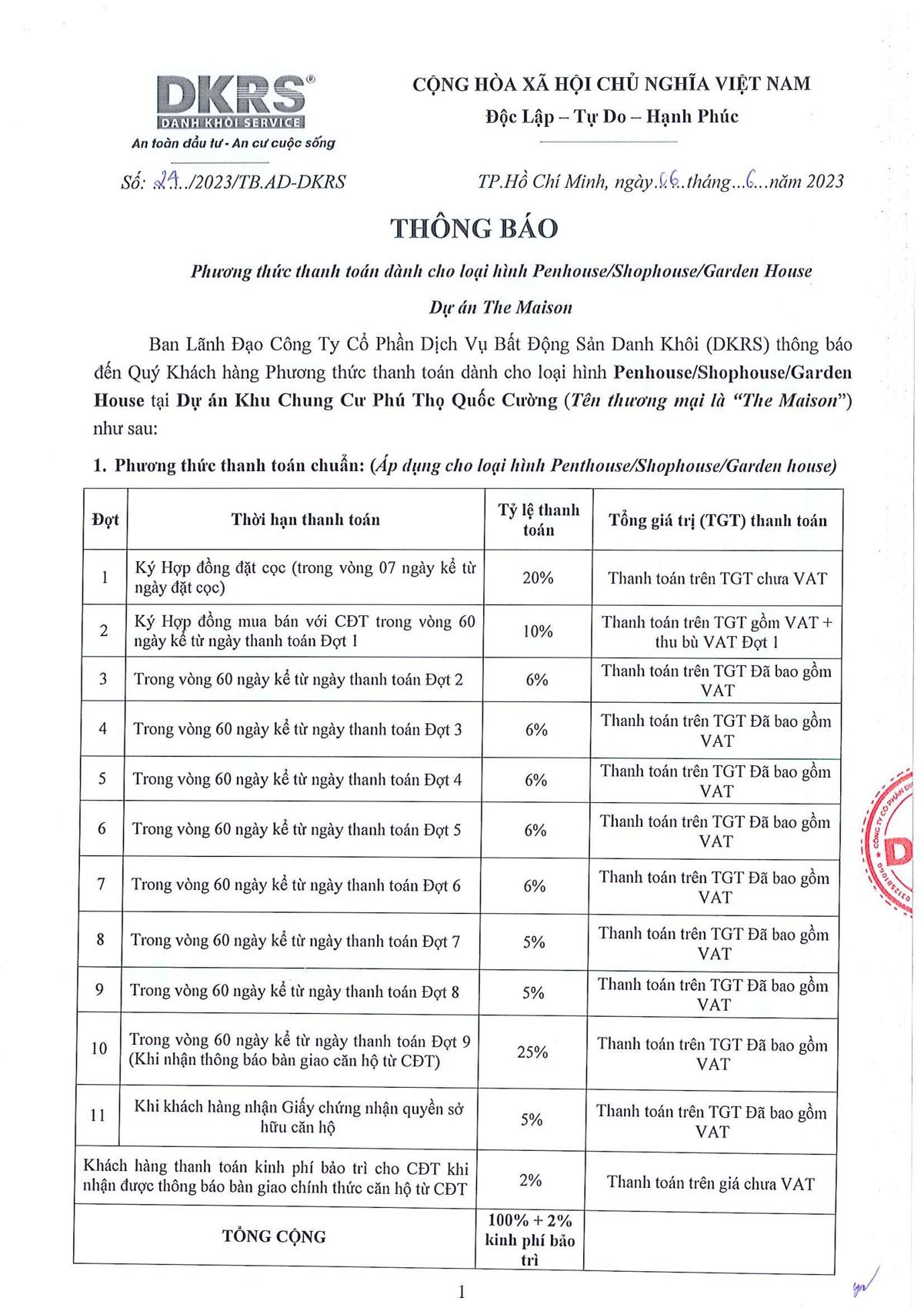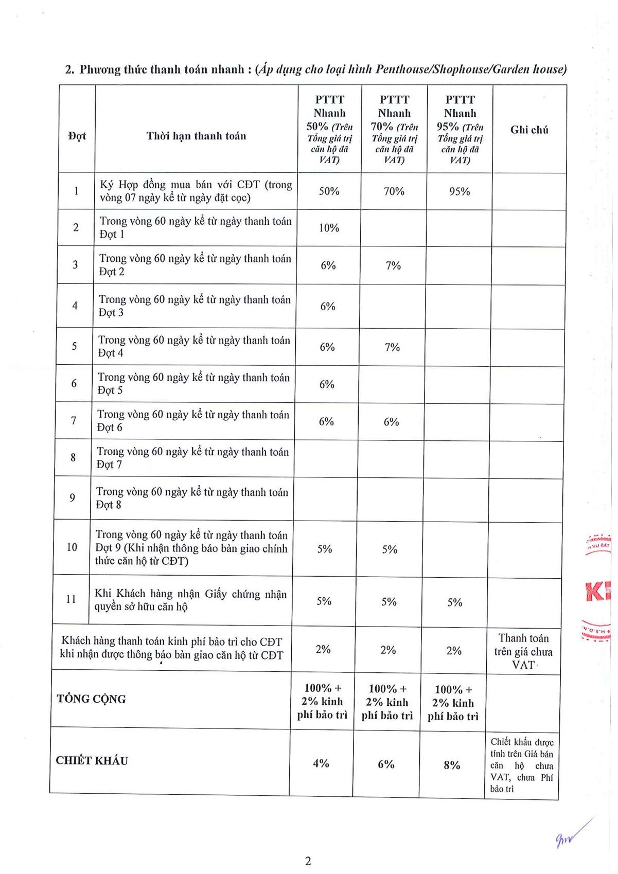 PHƯƠNG THỨC THANH TOÁN PENTHOUSE & SHOPHOUSE THE MAISON
