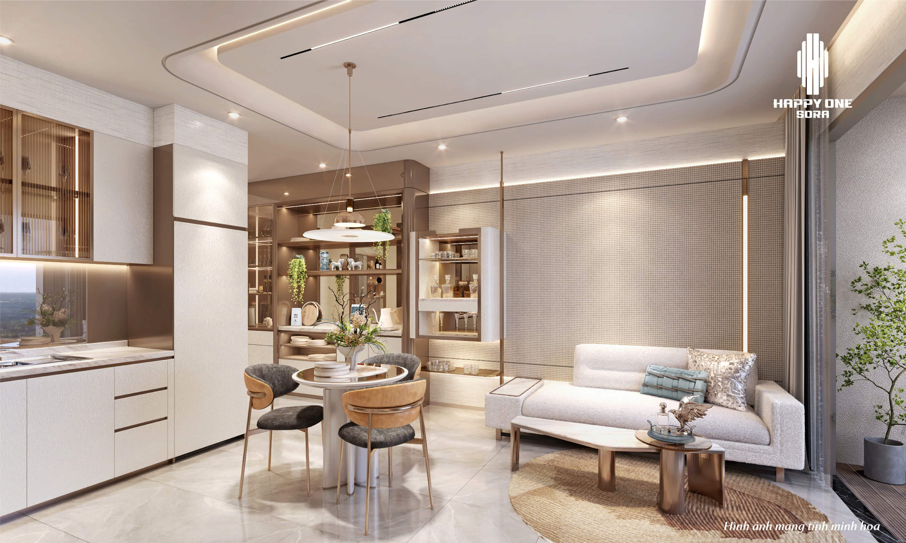 Các căn hộ tại Happy One Sora được thiết kế với không gian mở, tối ưu ánh sáng và gió tự nhiên, mang lại một môi trường sống trong lành và thoải mái. Với phong cách thiết kế hiện đại, tinh tế và sử dụng các vật liệu cao cấp, nội thất căn hộ tại Happy One Sora không chỉ đáp ứng nhu cầu về thẩm mỹ mà còn đảm bảo sự tiện nghi tối đa cho cư dân.