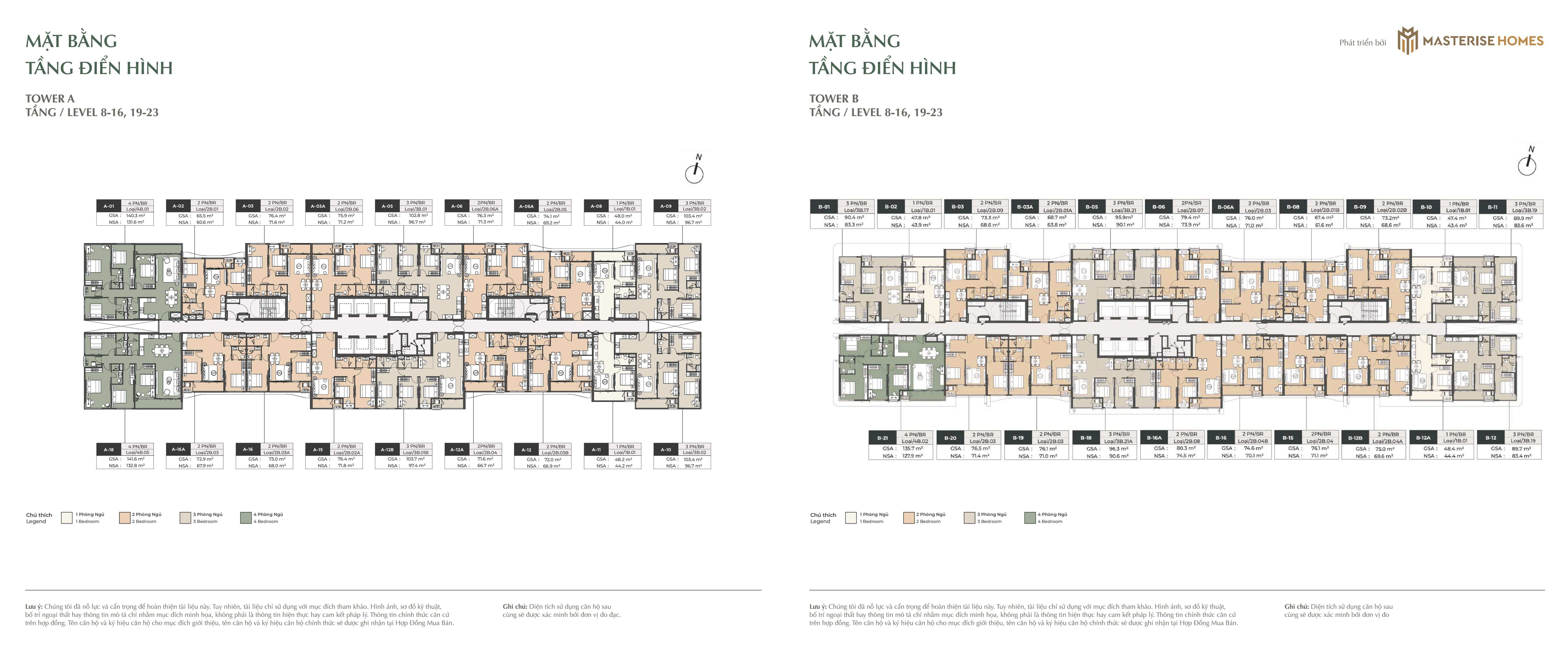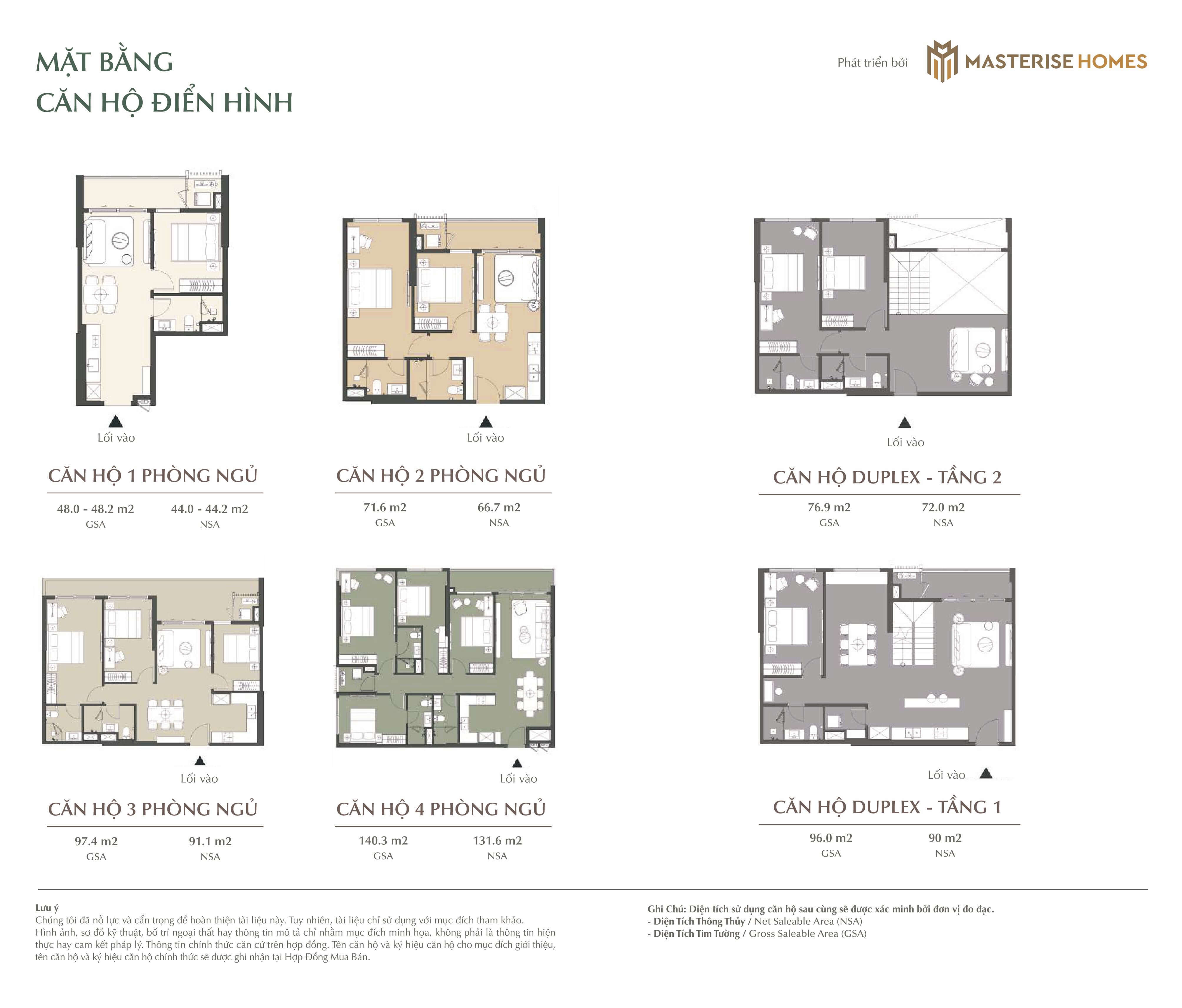 • Căn hộ 4 phòng ngủ: Từ 136,63 – 180,77 m²