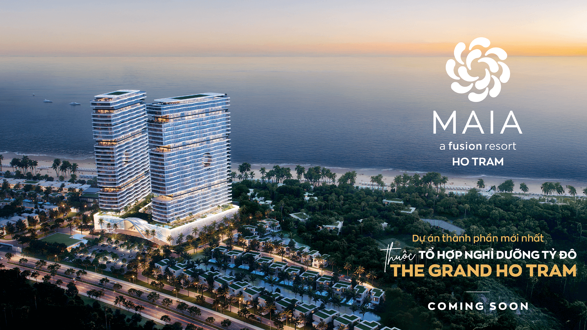 Maia Resort Hồ Tràm là khu nghỉ dưỡng biển cao cấp được phát triển trong giai đoạn mới nhất của quần thể The Grand Ho Tram Strip – tổ hợp giải trí nghỉ dưỡng quy mô hàng đầu Việt Nam. Dự án tọa lạc tại xã Phước Thuận, huyện Xuyên Mộc, tỉnh Bà Rịa – Vũng Tàu, ngay cung đường ven biển Hồ Tràm – nơi được mệnh danh là thủ phủ nghỉ dưỡng mới của phía Nam. Maia Resort Hồ Tràm sở hữu quy mô hơn 7ha, bao gồm hai tòa tháp condotel cao 25 tầng cùng 36 căn biệt thự biển sang trọng, cung cấp hơn 1.200 sản phẩm nghỉ dưỡng cao cấp đạt tiêu chuẩn vận hành quốc tế bởi Fusion Hotel Group – thương hiệu nổi tiếng trong ngành du lịch nghỉ dưỡng tại Việt Nam.