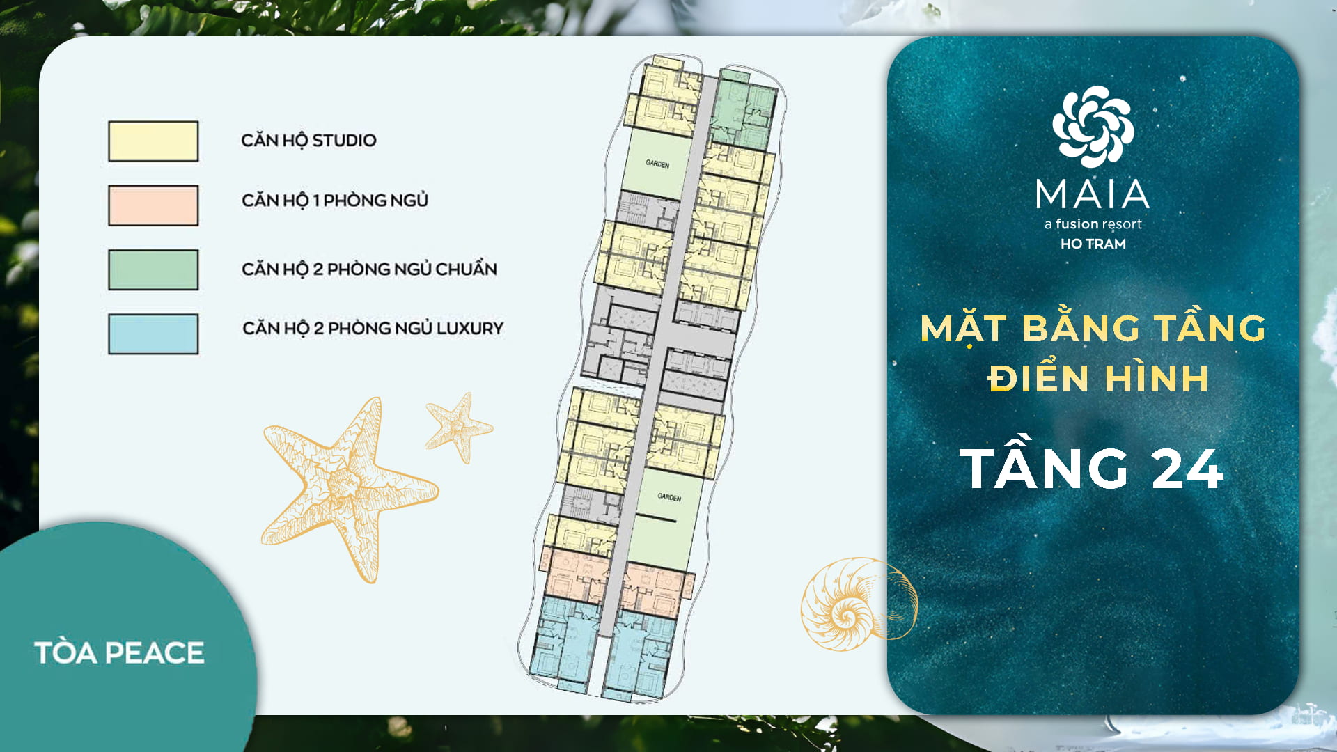 Trong giai đoạn 1, Maia Resort Hồ Tràm chính thức giới thiệu Peace Tower – tòa tháp condotel hiện đại thuộc phân khu A1, mang đến đa dạng loại hình căn hộ phù hợp cho cả an cư – nghỉ dưỡng – đầu tư sinh lời.