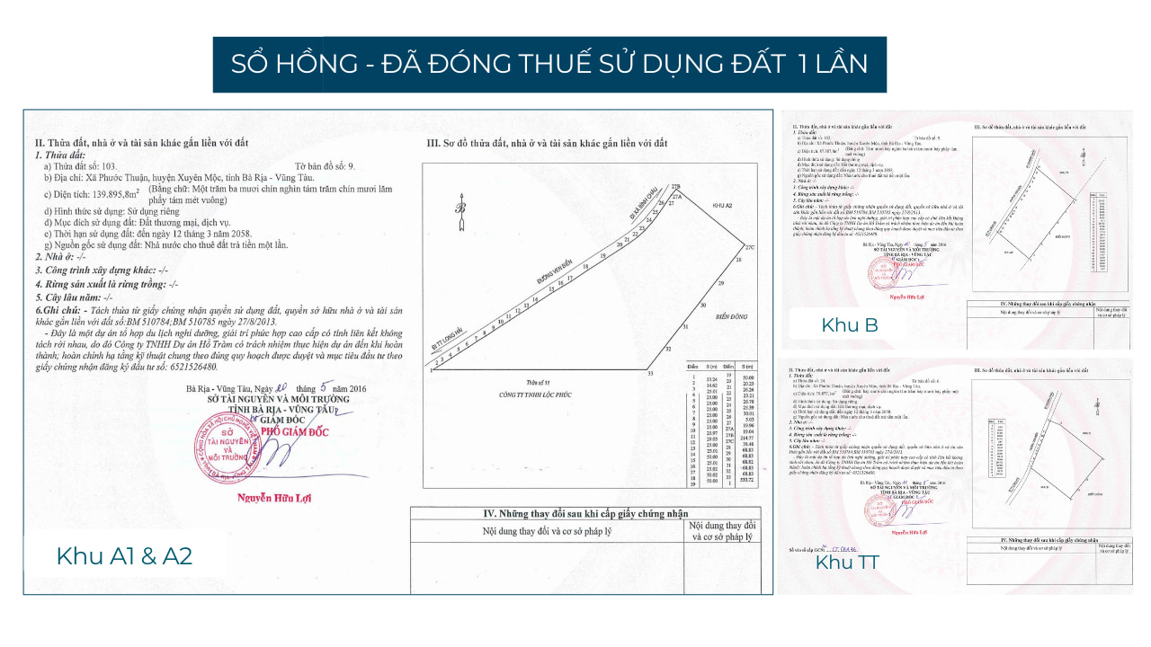 • Cấp sổ hồng – Đã nộp thuế sử dụng đất 01 lần