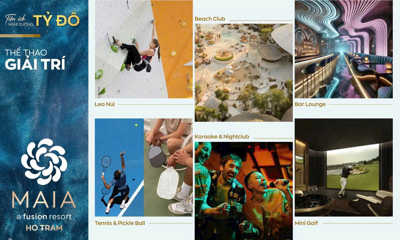 Maia Resort Hồ Tràm không chỉ sở hữu vị trí kim cương ven biển mà còn được bao quanh bởi hệ sinh thái tiện ích đẳng cấp quốc tế, mang đến trải nghiệm sống – nghỉ dưỡng trọn vẹn cho khách hàng và nhà đầu tư.