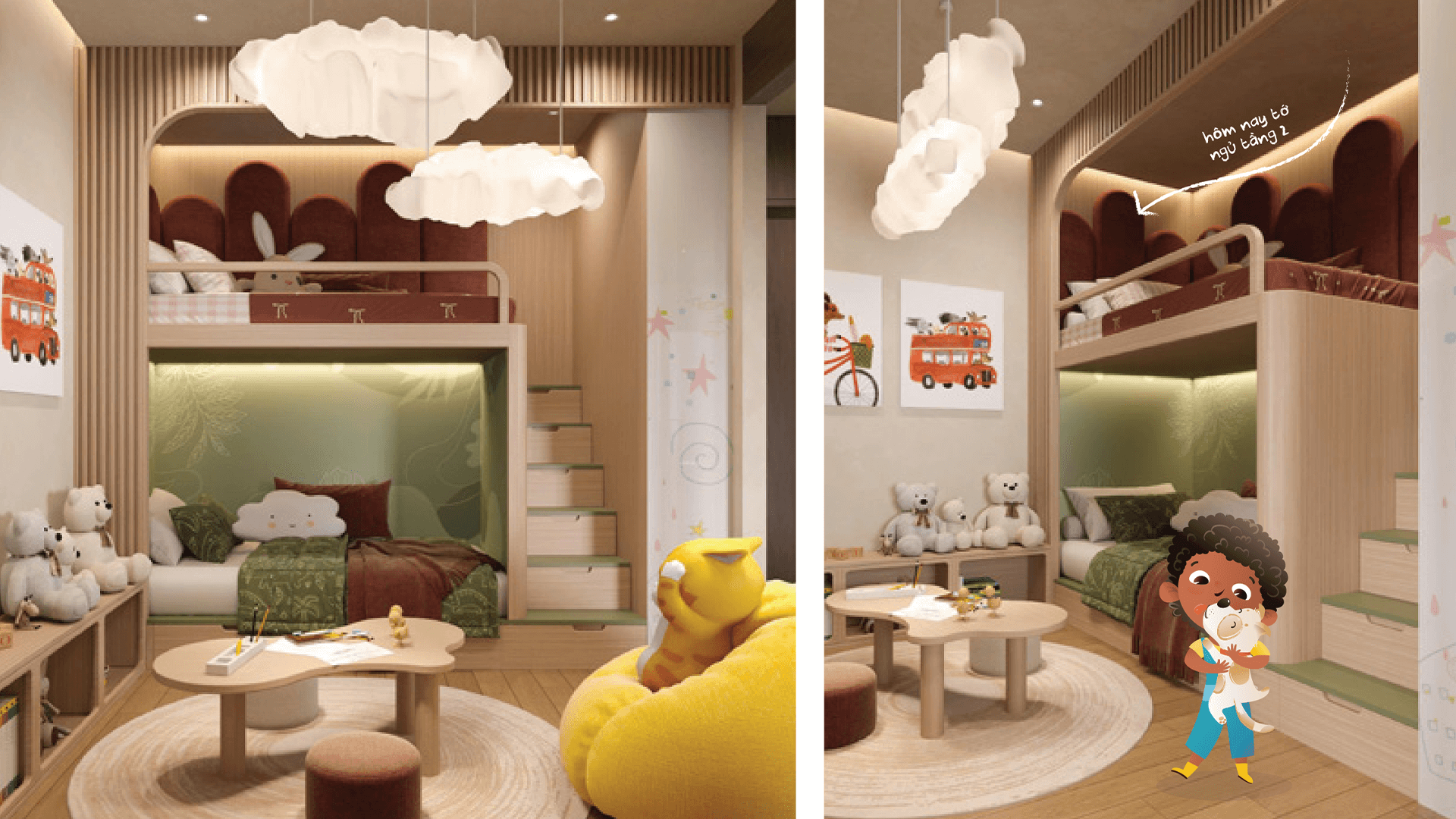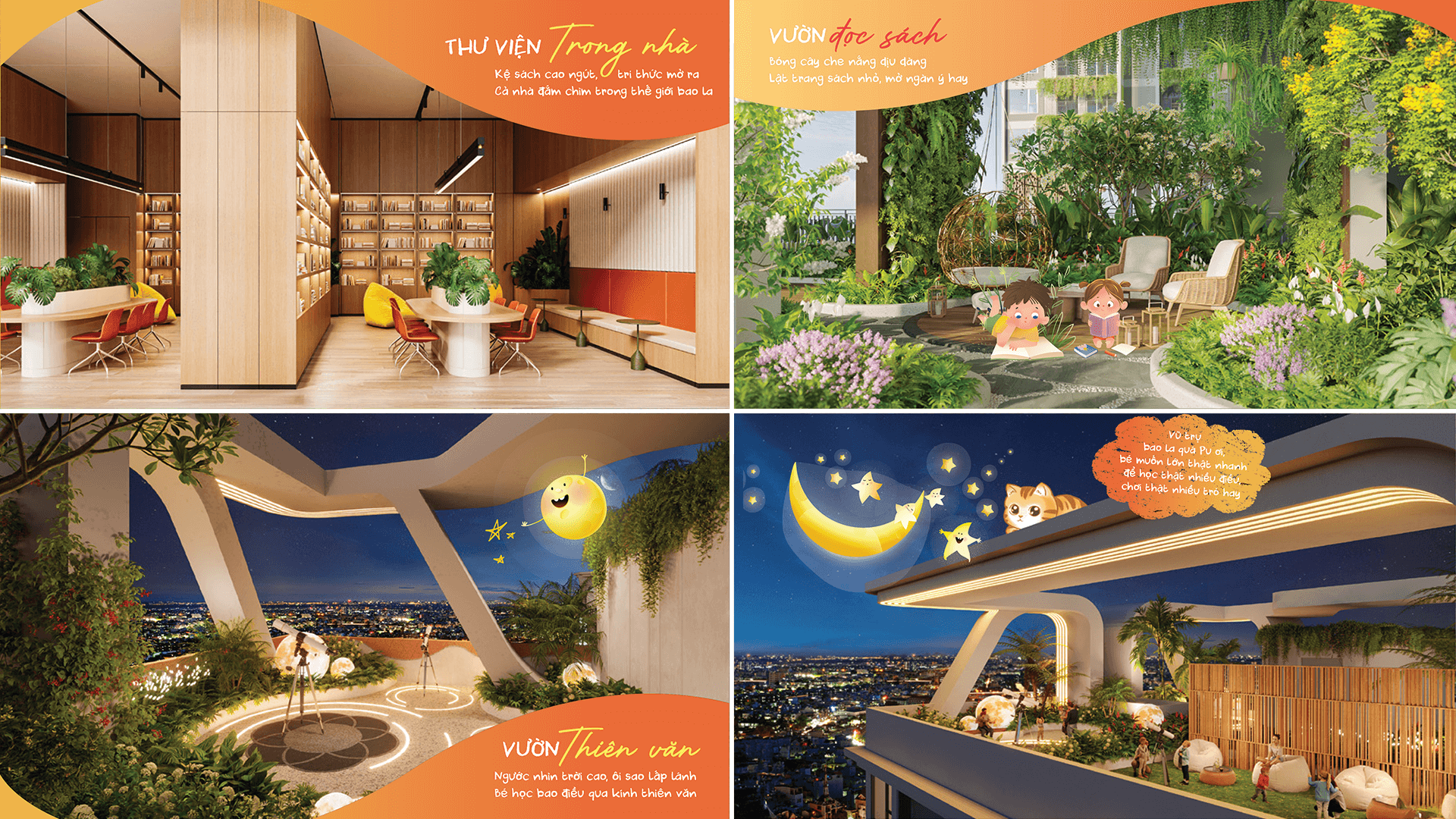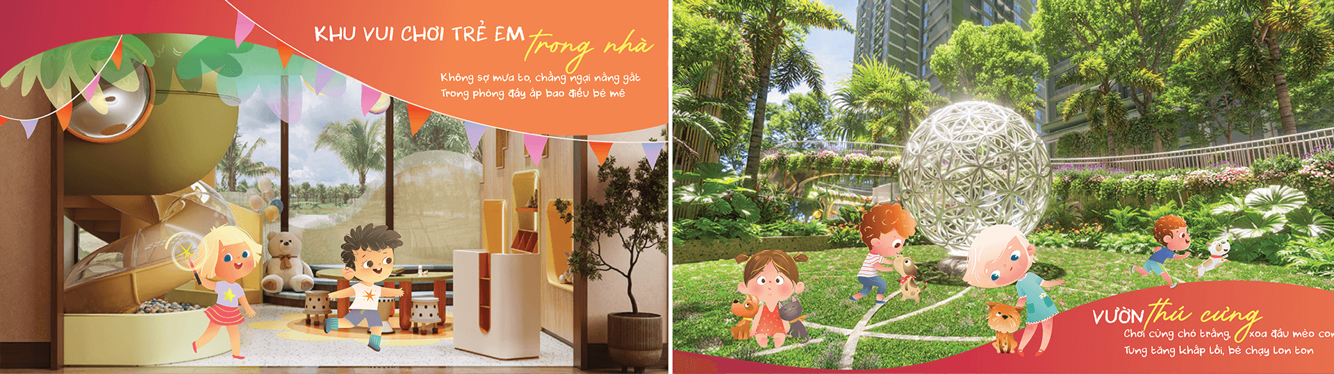 • Trong nhà (Indoor): phòng gym, khu vui chơi trẻ em trong nhà, phòng sinh hoạt cộng đồng, không gian làm việc chung (co-working)… giúp cư dân có lựa chọn đa dạng bất kể thời tiết.