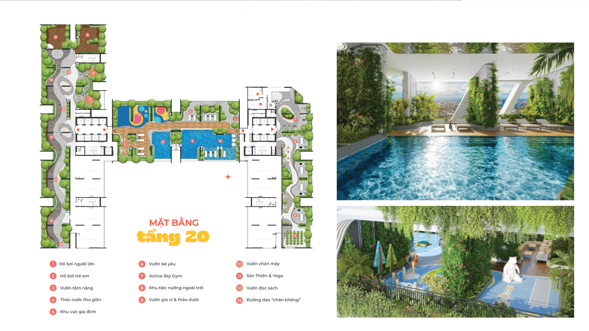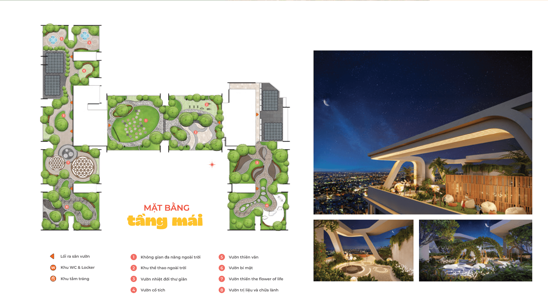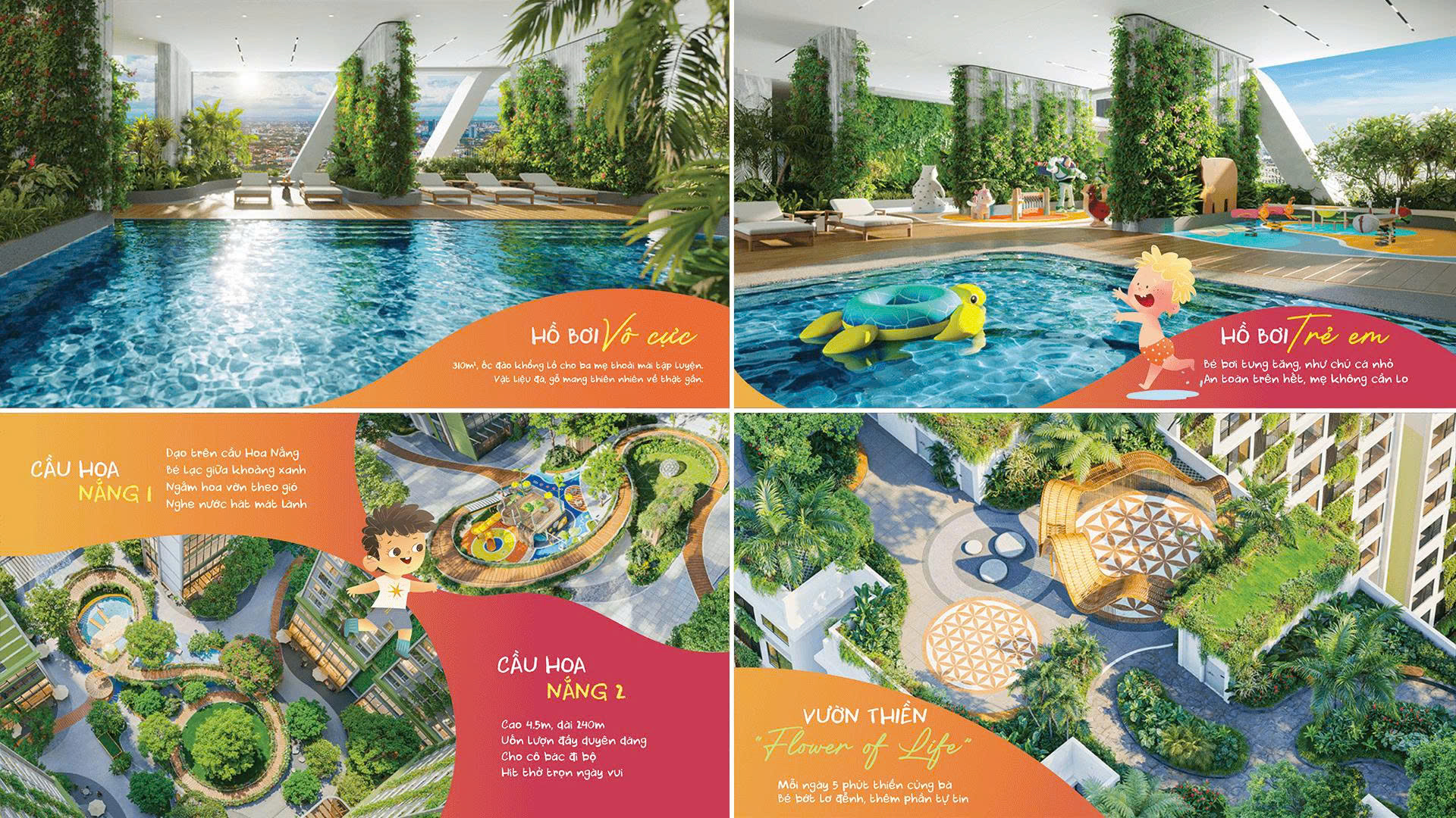 Điểm nhấn là sự liên kết từ khối đế, tầng tiện ích trung tâm đến tầng mái, tạo thành một trục trải nghiệm liên tục, không bị rời rạc. Đây là cách quy hoạch khá hiện đại, giống với xu hướng “vertical community” – cộng đồng sống trong một tòa tháp nhưng vẫn có đủ không gian sinh hoạt như một khu đô thị thu nhỏ.