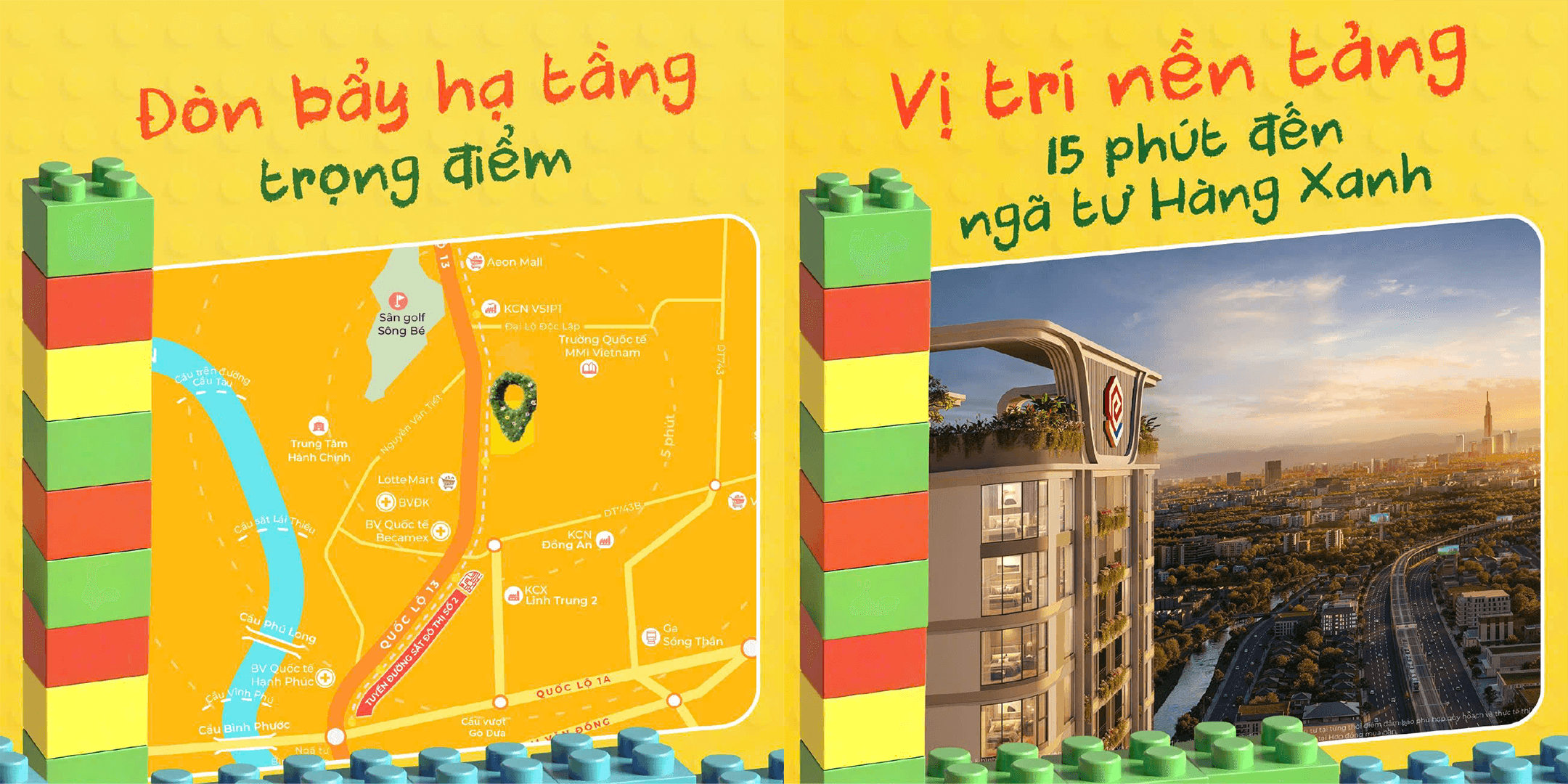 Với vị thế nằm sát ranh TP.HCM (Quận Thủ Đức, Quận 9), Thuận An – nơi dự án tọa lạc – được xem là điểm kinh tế tăng trưởng mạnh nhất của Bình Dương, đồng thời là tâm điểm thu hút dòng vốn đầu tư bất động sản trong xu hướng dịch chuyển từ trung tâm TP.HCM ra các tỉnh vùng ven.