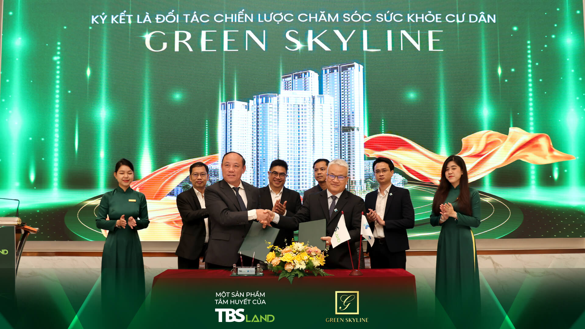 Điểm nhấn nổi bật của chương trình là lễ ký kết hợp tác chiến lược giữa TBS Land và Bệnh viện Hoàn Mỹ Thủ Đức. Sự hợp tác này mang đến đặc quyền chăm sóc sức khỏe riêng biệt, bền vững dành riêng cho cư dân Green Skyline, khẳng định cam kết xây dựng hạnh phúc từ những giá trị chăm sóc lâu dài.