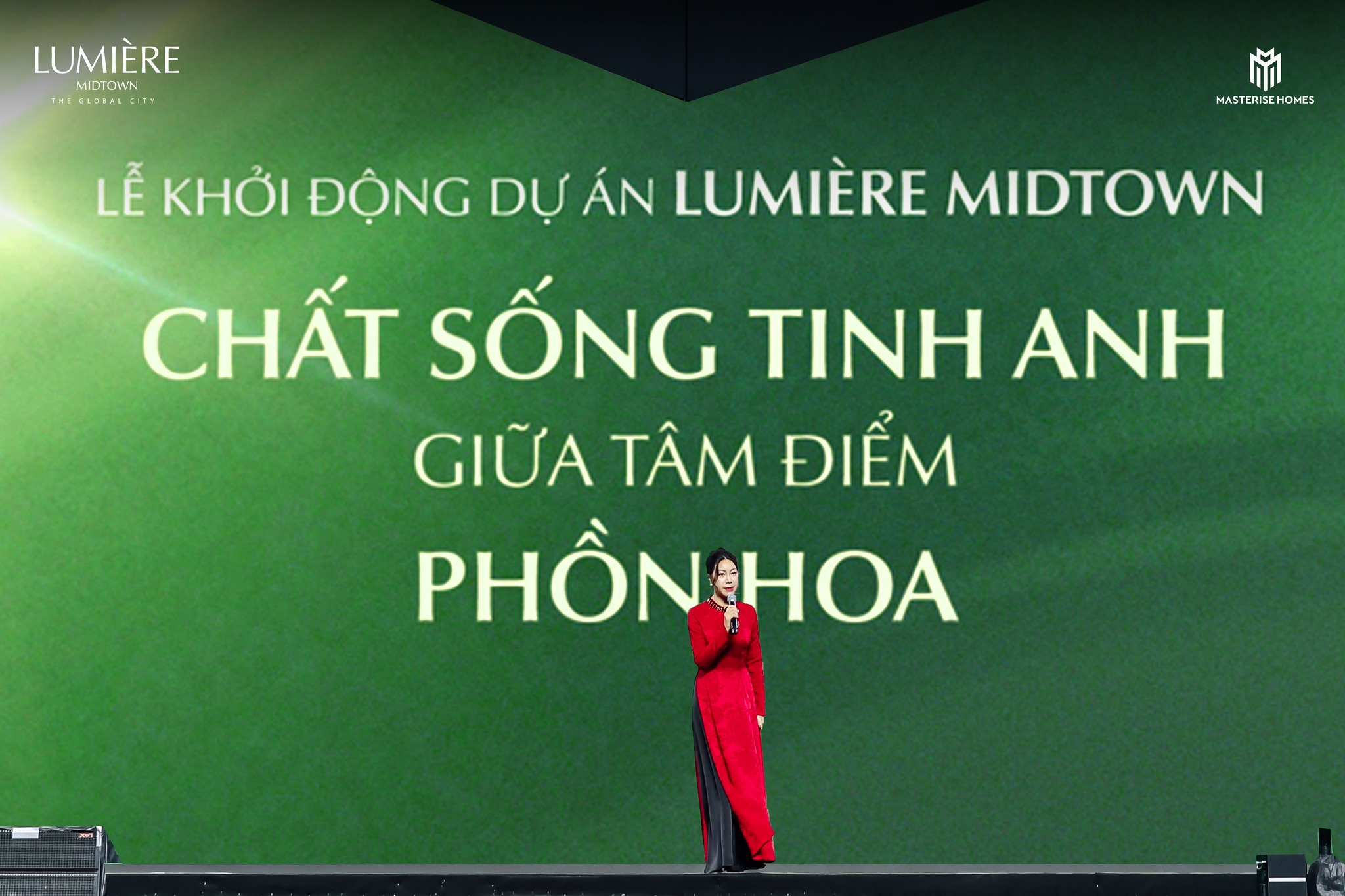- Buổi Kick-off được tổ chức nhằm công bố những thông tin chi tiết về LUMIÈRE Midtown, một phân khu cao tầng được xem là “trái tim” của The Global City. Với vị trí đắc địa ngay trung tâm, dự án được quy hoạch theo tiêu chuẩn quốc tế bởi Foster + Partners, hứa hẹn mang đến không gian sống hiện đại, tiện nghi. Tại sự kiện, chủ đầu tư Masterise Homes đã chính thức công bố quy hoạch tổng thể, thiết kế căn hộ, hệ tiện ích nội khu và chính sách bán hàng.