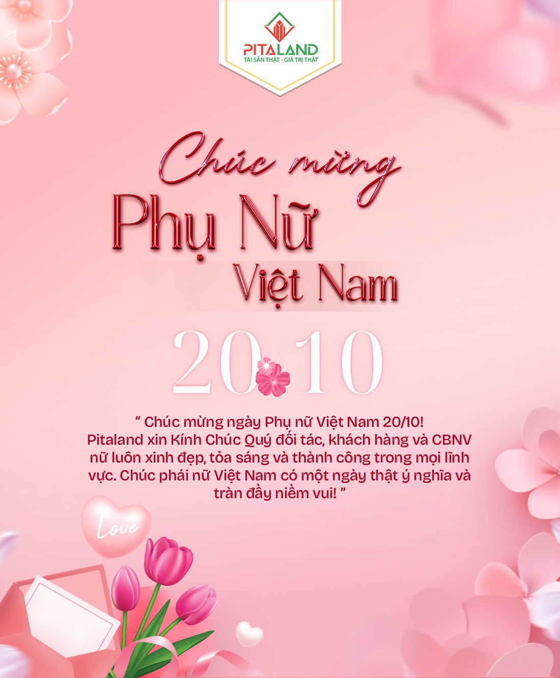 - “Vẻ đẹp của phụ nữ không chỉ nằm ở bề ngoài, mà còn ở tâm hồn và những giá trị mà họ mang lại cho cuộc sống.” Nhân ngày Phụ nữ Việt Nam 20/10, Pitaland xin gửi đến Quý chị em khách hàng, đối tác và cán bộ nhân viên công ty những lời chúc tốt đẹp nhất. Kính chúc các chị luôn khoẻ đẹp, thành công và hạnh phúc trong cuộc sống.