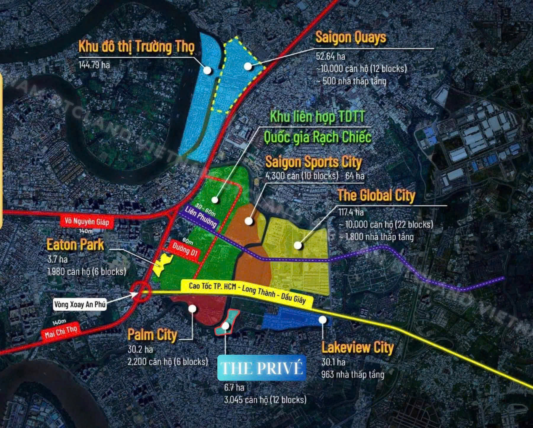 - The Privé là dự án căn hộ hạng sang được phát triển bởi Tập đoàn Đất Xanh, tọa lạc tại phường An Phú, TP. Thủ Đức – trung tâm đô thị mới phía Đông TP.HCM. Vị trí này được đánh giá là “tâm điểm giao thương” khi dễ dàng kết nối với Quận 1, Quận Bình Thạnh,qua các trục đường lớn như Mai Chí Thọ, Xa lộ Hà Nội, Lương Định Của và cao tốc Long Thành – Dầu Giây.